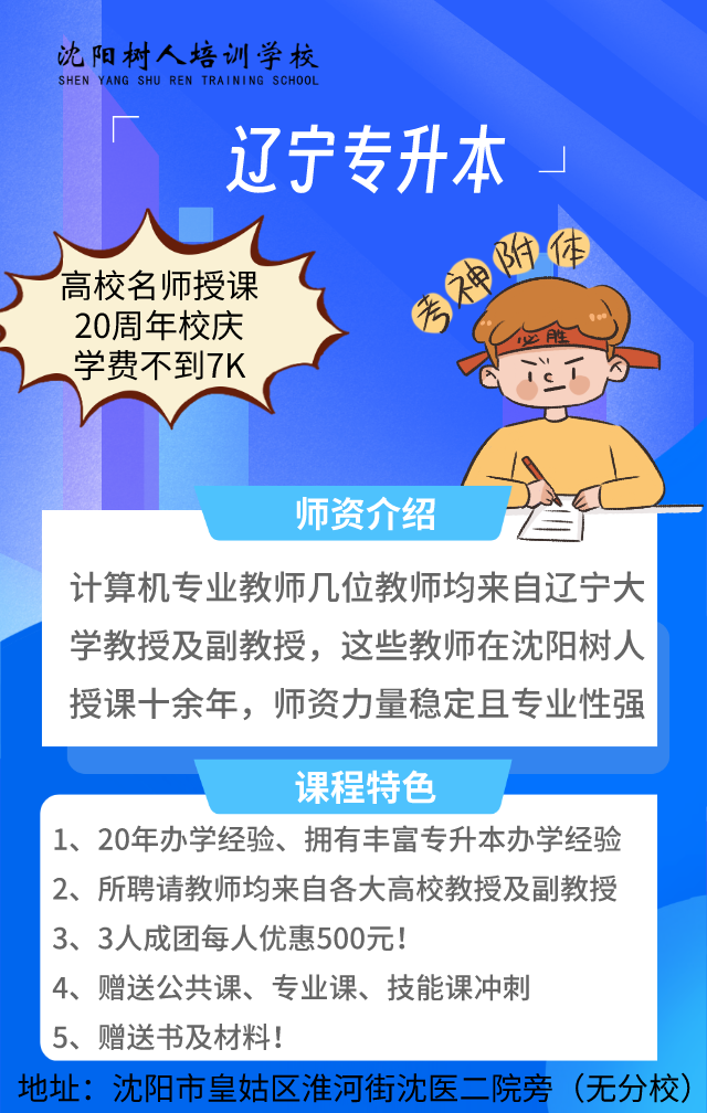 沈陽樹人培訓學校:專注專升本20年,無分校無連鎖無加盟。