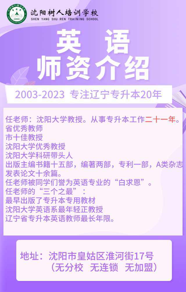 沈陽樹人培訓學校:專注專升本20年,無分校無連鎖無加盟。