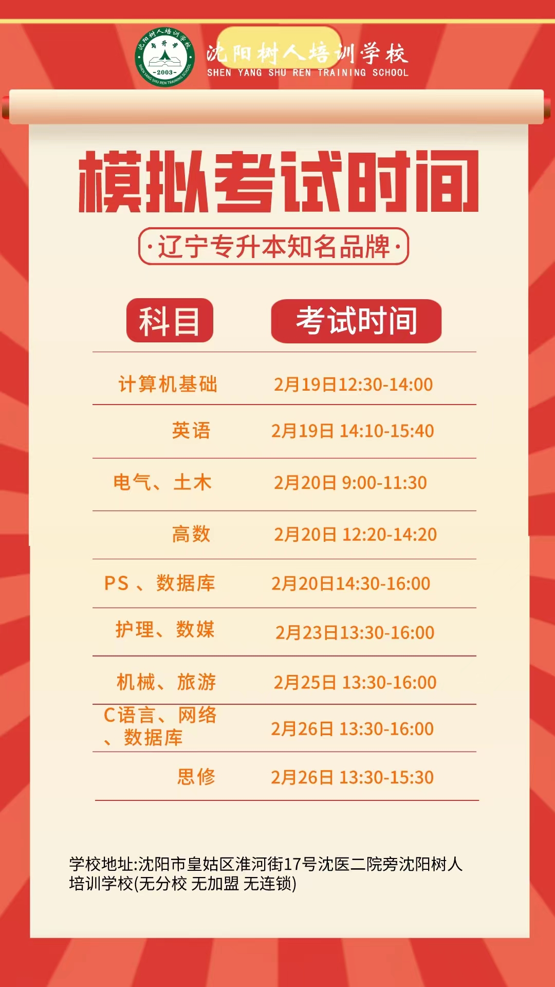 沈陽樹人培訓學校:專注專升本20年,無分校無連鎖無加盟。
