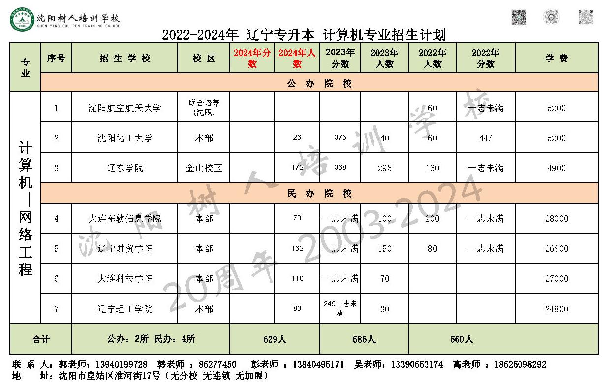 沈陽樹人培訓學校:專注專升本20年,無分校無連鎖無加盟。